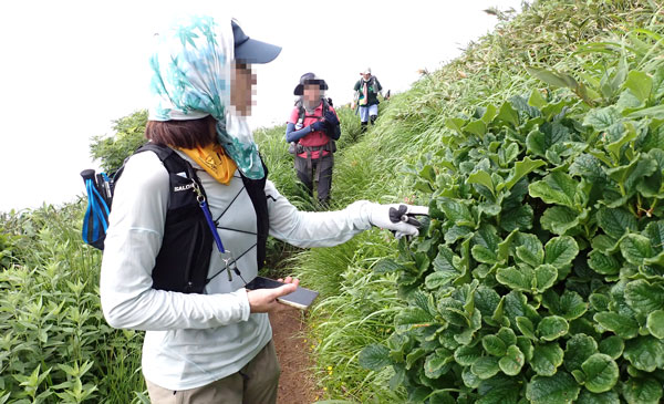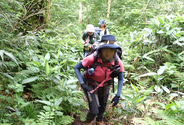 ガイド含め皆さん、長袖長ズボンのこの画像からは分かりにくいが、本日は朝から湿度高く蒸し暑い。