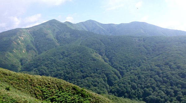 中央の、鷲が両翼を広げたような山が、和賀岳だ。