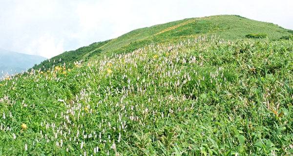 この尾根のニッコウキスゲは終盤で、入れ違いにイブキトラノオが林立。