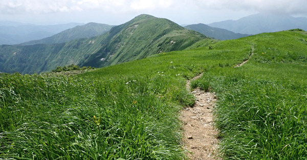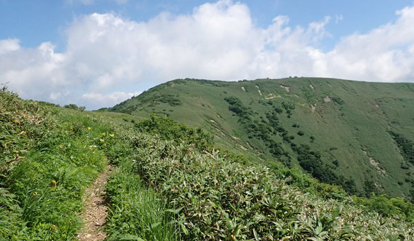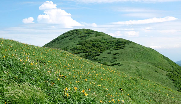 ニッコウキスゲの尾根からいったん下って、薬師平へ。