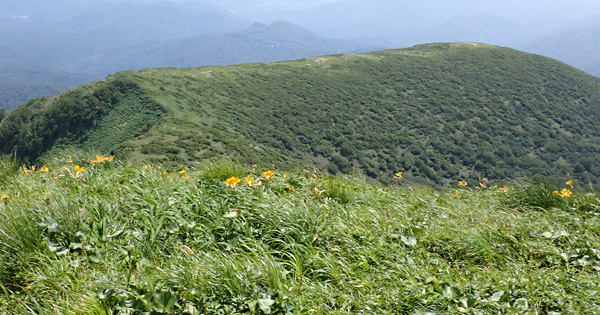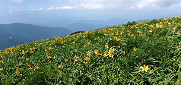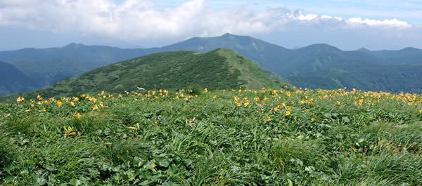 案の定、和賀岳の山頂はニッコウキスゲの黄色に彩られている。