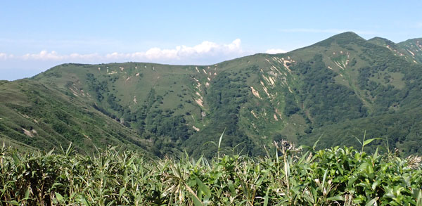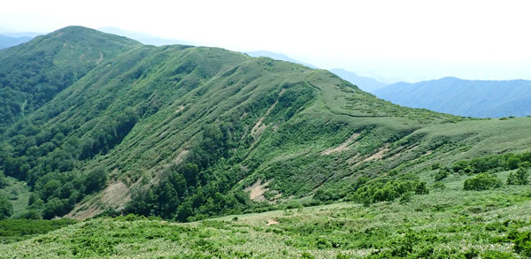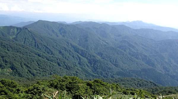 倉方で一息いれてからしばらく行けば、ブナの樹高が低くなって、展望のよい道に出る。