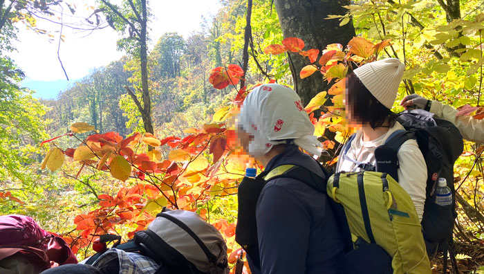 途中、立ち止まるたびに濃くなっていく紅葉に励まされ、わいわいと登っていく。