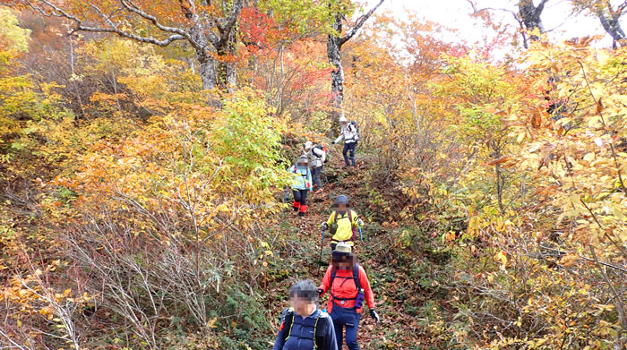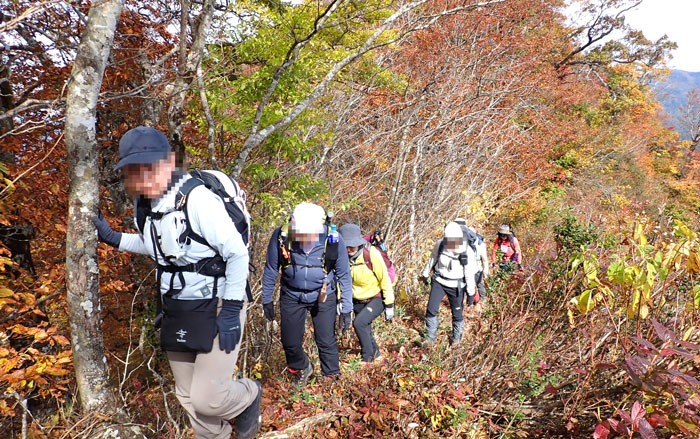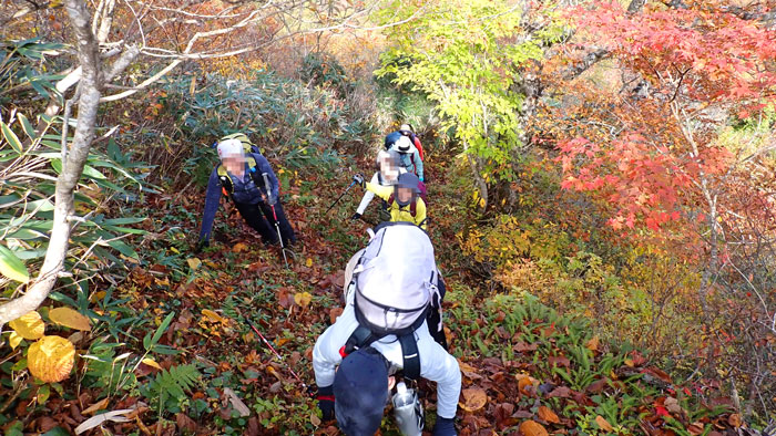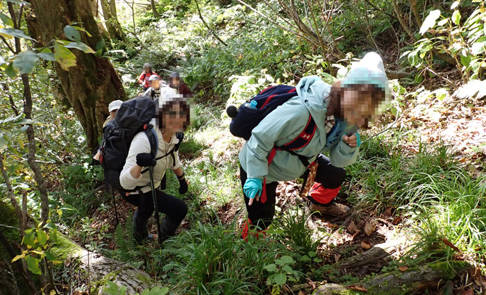 先頭で振り返ると、みんなの頭しか見えないほどの急登だ。