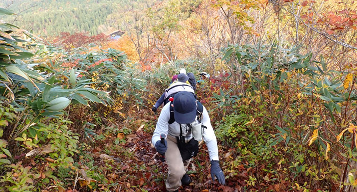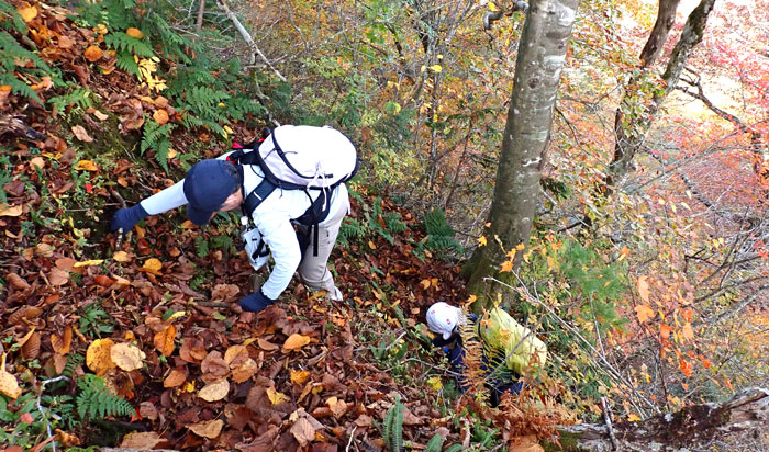 そのうち、手も使っての四輪駆動で登るような急登になる。