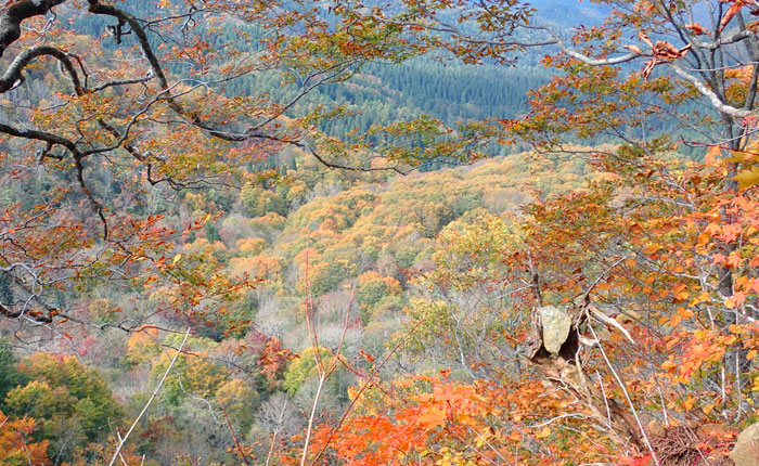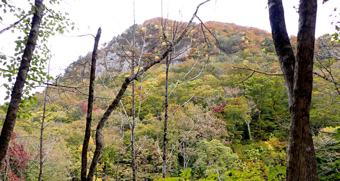 眼下には、前森山をアクセントに色づき始めた紅葉樹の森。