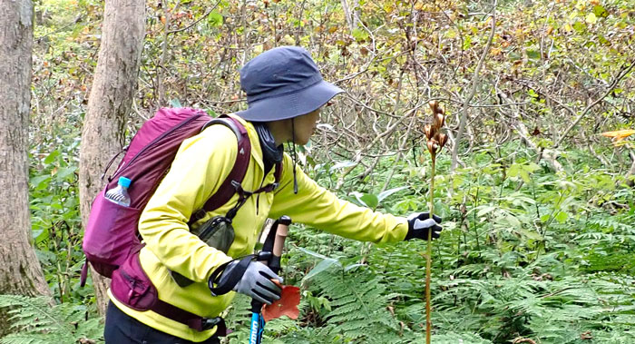 タイミングがあえば、根曲りタケのタケノコ、あるいはサンカヨウの群落に出会える。