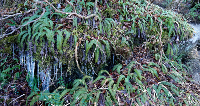 古い岩は苔むして、さらにシダに覆われユニークな佇まい。
