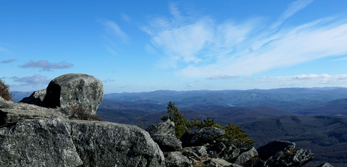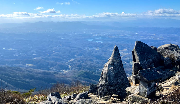 山頂は花崗岩が露出し、1000mを少し越える標高にもかかわらず展望がよい。