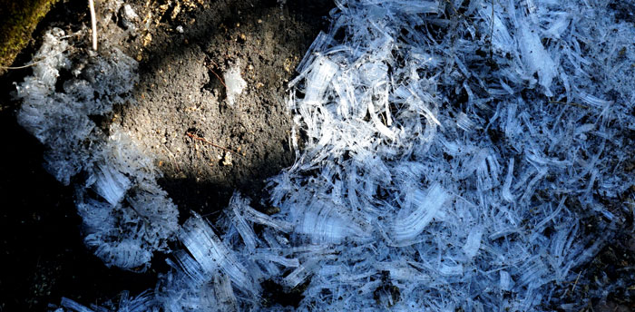 盛岡の冷え込みはさすがで、足元には霜柱。