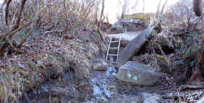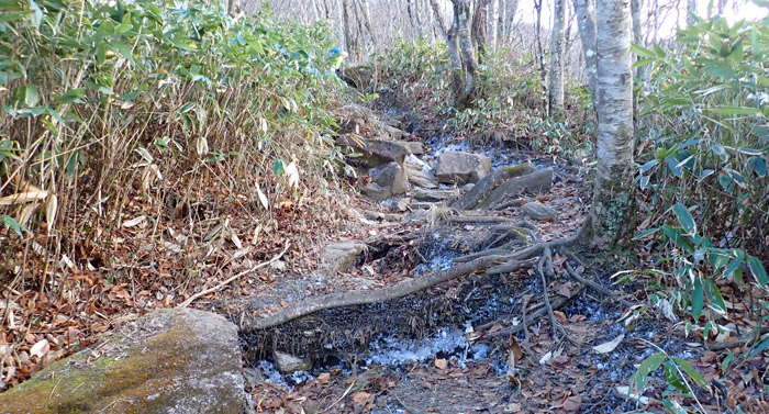 キャンプ場に降りる手前で分岐があり、洗い場とある。