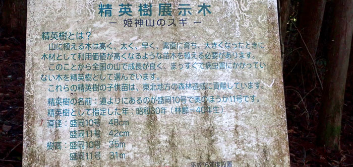 杉に突っ込みながら進むと「精英樹」の看板がでてきた。