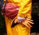 秋などは、雨が降ると指先がかなり冷える。かといって冬用のゴアだと 大きくて邪魔なので、薄手のレイングローブ。防寒にもなるので風の強い日も重宝だ。