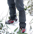 登山靴のまま、レインズボンを履くためにスーパーの袋か大きめの