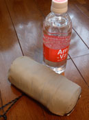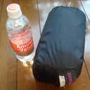 初めて購入したシュラフ。写真の青い袋が収納したサイズ。