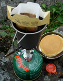 山中でのコーヒーは格別に美味しい。 紙フィルターのレギュラーコーヒーが手軽で便利。