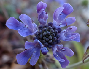 白いバージョンもあるそうで、シロバナタカネマツムシソウと呼ばれるらしい。