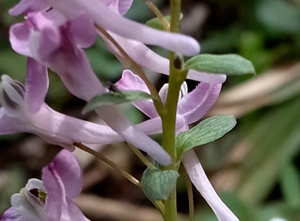とっても似た花に、ヤマエンゴサクやミチノクエンゴサクがある。見分け方は花の下に付く小さい葉っぱ(苞)がポイント。