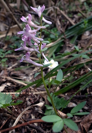 花の下に付く苞が楕円形で切れ込みがないものがオトメエンゴサク。ヤマエンゴサクやミチノクエンゴサクはこれに切れ込みが入る。またミチノクエンゴサクは全体にもっと小さくほっそりしている。