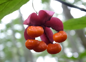 似た花にコマユミやヒロハツリバナがある。コマユミも実がぶらさがるが、ツリバナの実よりも小振りで、種子はふたつ。ヒロハの方は名前通り葉っぱが広い。残念ながらヒロハツリバナはまだ見たことが無い。