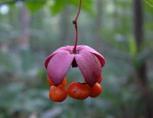 仮種皮が割れて、中から5個の種子がぶら下がって現れる。
