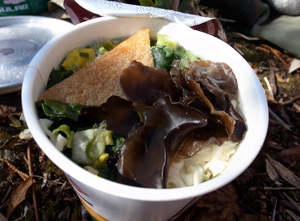 虫出しして茹でて、カップラーメンに。ぷりっぷり。
