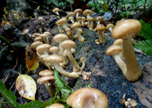 春から秋、広葉樹や針葉樹の倒木にわらわらと生える。秋田ではサワモタシの名前で親しまれ、特に県南地域では郷土食の納豆汁に欠かせないきのこ。