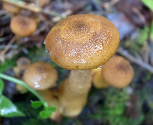 傘には黒っぽい鱗片がある。中央にとくに集中する。