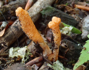 トウチュウカソウも寄生する虫によっていろいろあり、この写真のはサナギタケ。地中に埋まっているガの蛹から生える。