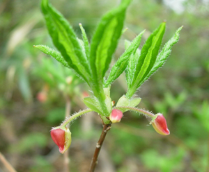 目を奪われ勝ちだが、ちょうど人の目線の高さにコヨウラクツツジがこじんまりと咲いている。