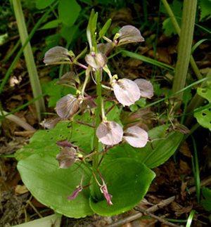 葉は二枚。秋には枯れてしまい、枯れた葉枝に包まれた偽茎球だけとなって越冬するようだ。
