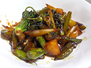 あくが強いので、葉先をてんぷらにしたり、酢みそ和えなどが美味しい。私はきんぴらにしてみたが、これもなかなかイケル。右の写真は、うどとコシアブラで作った山菜きんぴら。