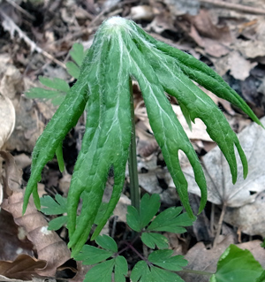 シーズンは4月から6月ぐらい。綿毛に覆われた特徴的な葉の山菜。この葉が開ききらないうちが食べごろ。 モミジガサと似ているが、開いた葉はモミジガサよりも切れ込みが深くなる。 また、モミジガサよりもアクが強いとのこと。 食べ方はおひたし、あえもの、天ぷらなど。
