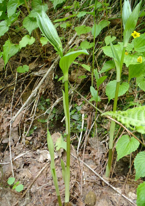 ホウチャクソウは摘んだときに臭いのと、根が細いヒゲ状なのだそうだ。ユキザサや、ナルコユリ、アマドコロ等の根は、
