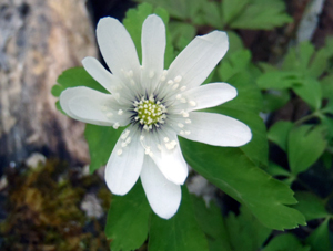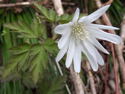 こちらがアズマイチゲ。葉っぱの切れ込みは浅く、丸みがある。キクザキイチゲはもっと切れ込みが深く、ギザギザしている。