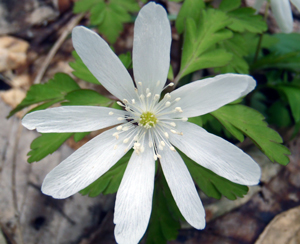 春の登山道脇、落葉広葉樹がまだ芽吹かないうち、つまり木々に遮られることなく日差しが林床に差し込む時期に咲くスプリング・エフェメラル。木々が芽吹き始める頃には彼らの仕事はあらかた終わり、花も葉も地表から姿を消す。