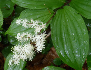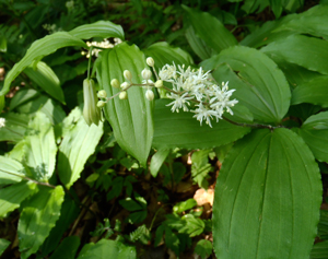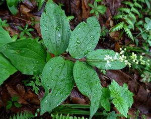 2011年6月14日牛形山 ユキザサとホウチャクソウのツーショット。ユキザサは食べられるが、ホウチャクソウは食べられない。とても苦い。出始めのころはとてもよく似ている。