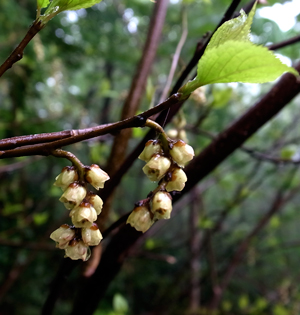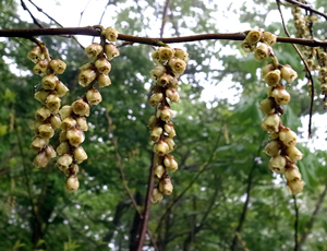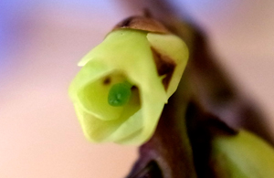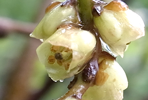 キブシは雌雄異株。比較的大きくて、黄色が強いのが雄花。