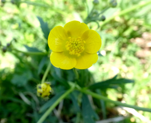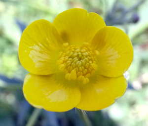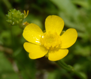 日当りの良い山野で見かける。花は直径2センチ弱で、花弁には光沢がある。かわいらしい花であるが、キンポウゲ科らしく有毒である。