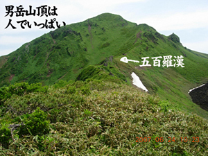 男岳山頂にたくさんの人の姿が見えて、ちょっとひるみます。 |