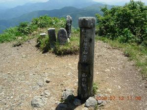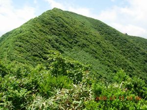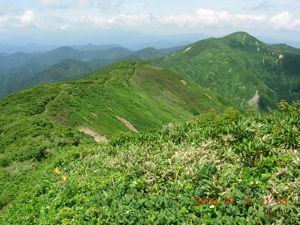 《山頂からは天狗森から小又山への爽快な縦走路がうねる》