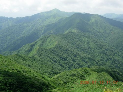 西ノ又コースは下山には使いたくないな〜と、帰りはパノラマコースを使った。西ノ又はサクサクと高度が下がって行くが、パノラマはアップダウンを繰り返しながら距離を歩き、最後に下りが延々続く。時間的にはどちらも変わらないようだ。変化にとんだ西ノ又に比べ、パノラマは稜線からの景色以外は単調。歩きやすい踏み固められた登山道が続くから、楽とも言えた。 |