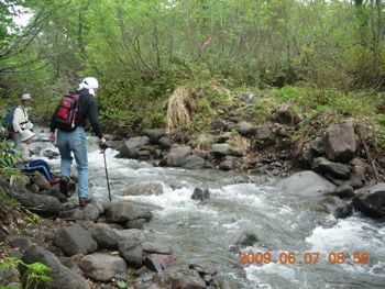 登山道は、3カ所の徒渉点が今年は雪解けが遅いせいか