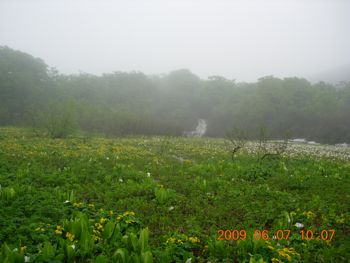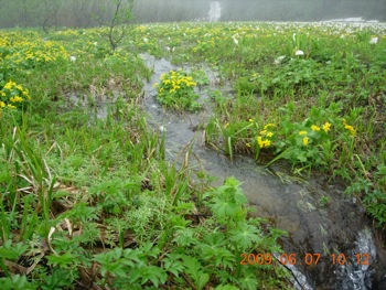 リュウキンカと水芭蕉の大群落と
