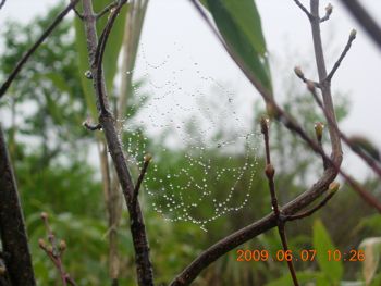 霧雨の日ならではのつかの間の芸術品。