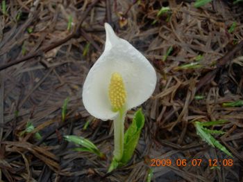 花は水芭蕉が雪解け水の流れの中に。