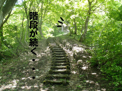 階段がなければ、こんな直登では滑って大変だろう。