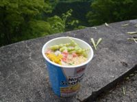 ラーメンが出来るまでのおにぎりと、採れたてタケノコラーメンと。