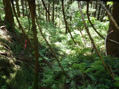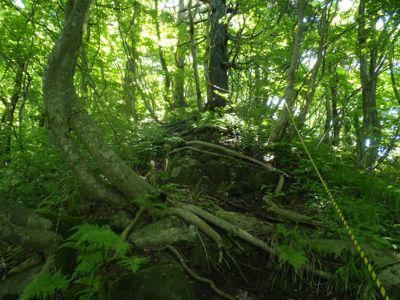 所々ササが多い、灌木にも遮られ何とか進むが、やがて倒木が多くなり