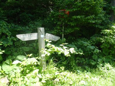 で、道路に出るとここにもその歩きにくい登山道へ誘う標識がある。